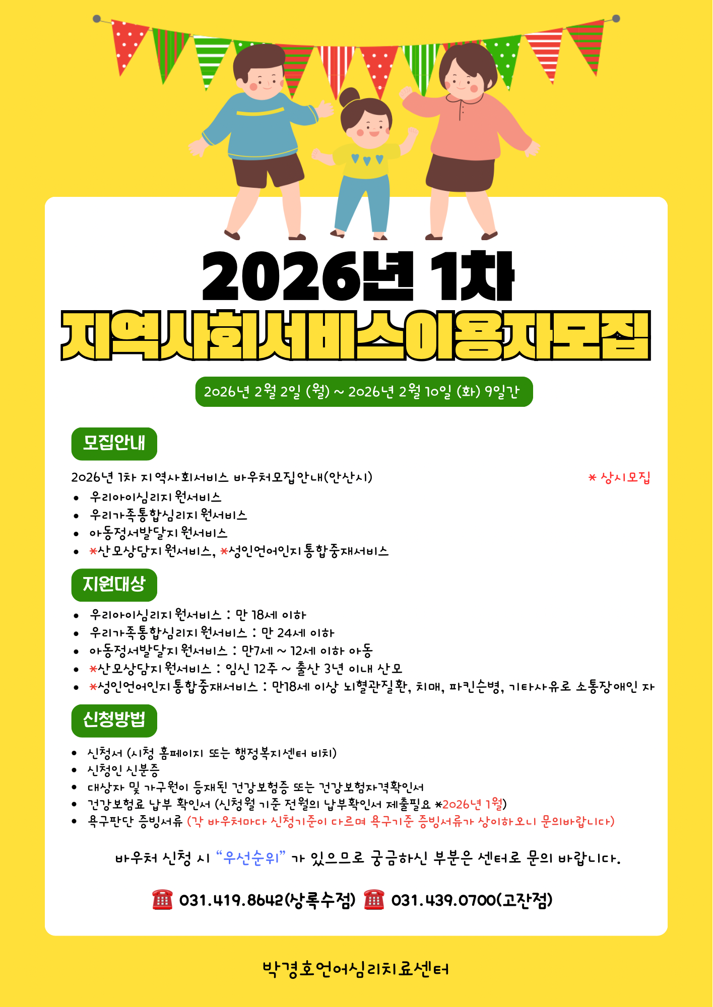 26³â2¿ù2ÀÏ(¿ù) ~ 2¿ù10ÀÏ(È) ¾È»ê½Ã °æ±âµµ Áö¿ª»çȸ¼ºñ½º ¹Ù¿ìó ¸ðÁýÀ» ÇÕ´Ï´Ù!